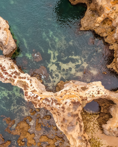 Ponta da Piedade is one of Lagos’ most famous sightseeing spots. Ponta da Piedade is the most southern tip of Lagos and from here you have an amazing view of the incredible rock formations that surround this point. It also marks the end (or the beginning) of the Lagos Cliff Walk. There’s a small, but sketchy path that you can take to get closer to the edge of the cliffs. Be very careful though when taking this path. Especially during high season it’s way too crowded on this small path and some people are getting way too close to the edge. We’d highly recommend never getting close to the edge as the cliffs can be unstable, which can lead to very dangerous situations.